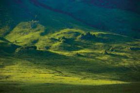哈甫娜牵着马,笑着走着,不时回头看我。马一步一停地慢慢打着晃儿走,我高高坐在上面,轻轻地左摇右摆。脚下是铺展到山谷尽头的碧绿深厚的夏牧场草甸,左面是群山,右面是森林,环绕着的是河。这深山里真寂寞……哈甫娜带着我向家走去,我真想俯下身子,从背后搂住她,请她留下来,和我们在一起……