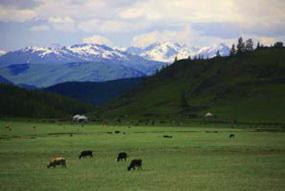 刚开始相互间一片空白嘛,有待了解的地方太多了。所以话题满地都是,一抓一大把,聊起来活络极了,根本没有以后的那些生硬和拘束。在气氛最欢乐的时候,我们聊起了骑马的事情,她说她家离这儿有四个小时的骑马路程呢,根本就在边境线一带了。我们咋舌不已,待会儿回去还要花四个小时!幸好我们这里夏天的白天相当漫长,否则一整天的时间就全耗在了路上,和我们说两句话的时间都没有了。
